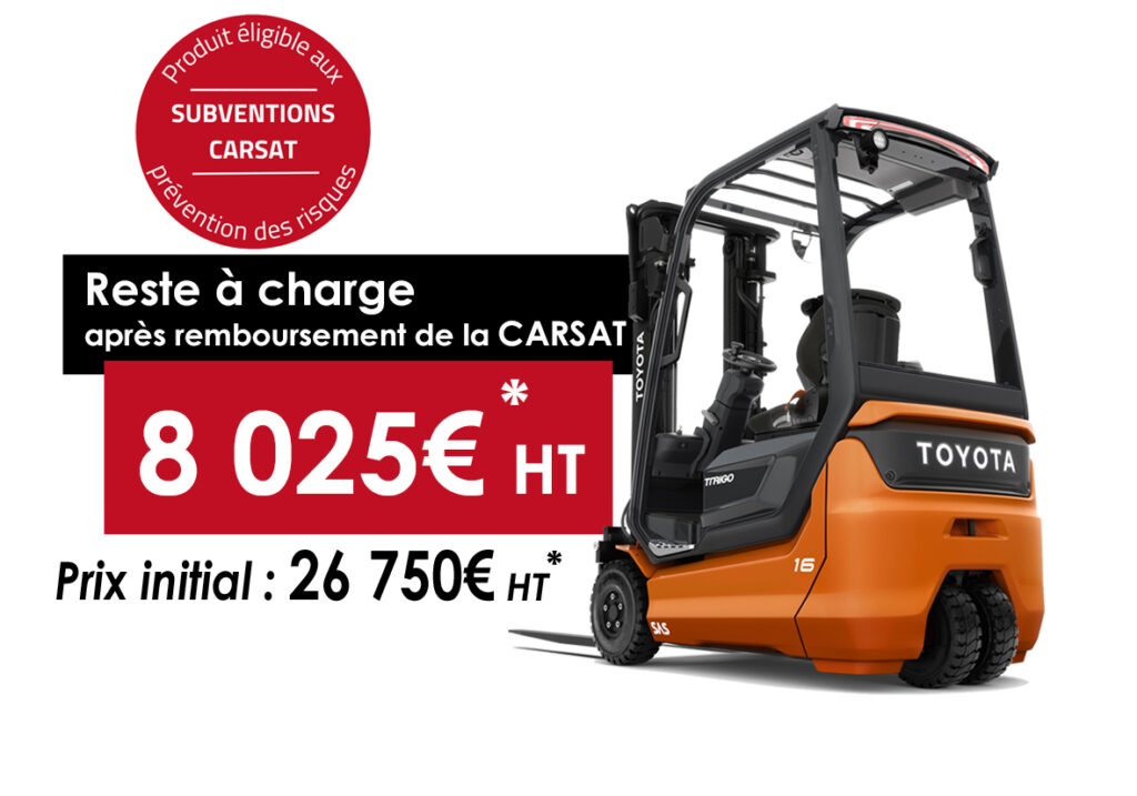 Découvrez notre sélection de chariots Toyota éligibles à la subvention CARSAT.